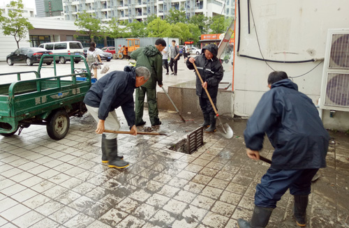 暴雨预警就是紧急动员令。6月9日上午,作为抗涝排水第一责任人的环境服务中心召开班组长以上紧急会议,布置暴风雨来临前的隐患排查和抗涝准备工作。会后,中心立即组织了对三校区的洪涝隐患大排查,提前做好树木的修剪加固、排水管网的清理疏通等各项工作,做到未雨绸缪、防患于未然。