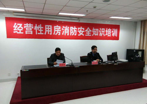 培训中,沈教官以近期发生的几起教训惨痛、发人深省的典型火灾事故案例为例,采用视频、图片及文字的形式,用通俗易懂的语言,生动形象地向参训人员阐述了火灾的特点和危险性。同时结合门面房生产经营过程中大量使用液化气和电器的特点,就火灾发生的原因、怎样预防火灾、火场逃生技能、如何正确报警以及生活中几种常见火情的灭火技巧等内容进行了详细的讲解。讲解中,沈教官特别强调,在门面房的生产经营过程中,液化气罐要按照消防要求放置,电线线路不能私拉乱接。与会人员深受教育,清醒地认识到具备消防安全知识和门面房消防安全工作的重要性。