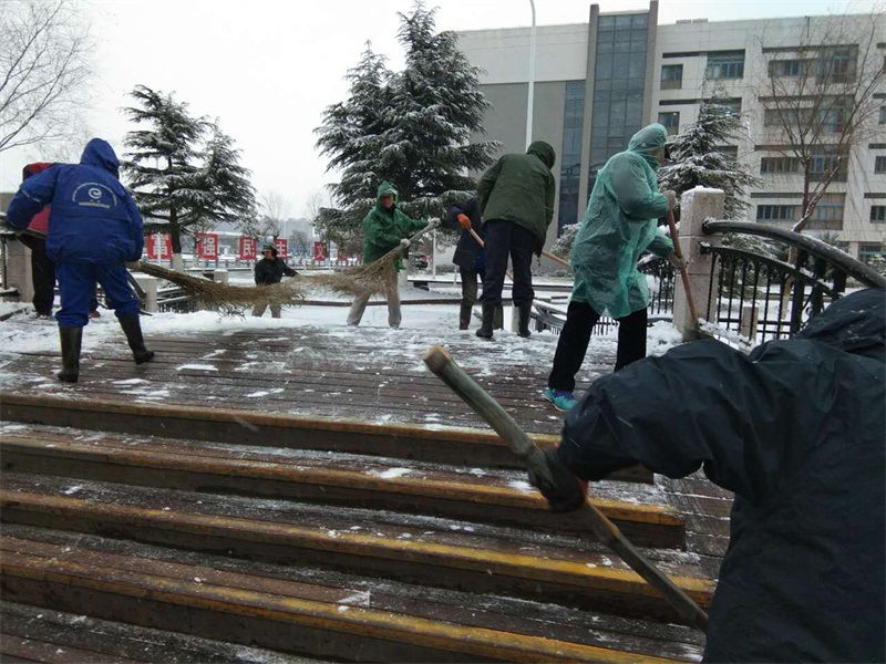 2018年的第二场雪来得非常猛烈,道路积雪、路面结冰给师生的通行带来极大的不便和安全隐患。此前,按照后勤保障部领导的指示,已根据气象台发布的较强雨雪降温天气,环境服务中心立即启动雨雪天气应急预案,成立一支义务扫雪队,并预备铁锨、扫帚、手套等扫雪工具。