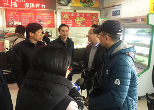 3月5日上午,南通市食品药品监督管理局局长张兵一行10余人,对我校食堂进行新学期食品安全专项检查。我校副校长樊小东及后勤保障部主任张建安、副主任徐友飞接待了来宾。