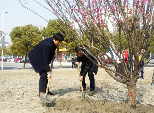 栽种现场秩序井然、热火朝天,在校领导的带领下,大家手持铁锹和水桶,“撸起袖子加油干”,将一颗颗充满生机和希望的梅花树苗、金边黄杨、红叶石楠植入坑内,并为它们浇灌生命之水。看着那一棵棵自己亲手种下的梅花树在微风中摇曳,大家无一不露出幸福的笑容。校党委书记浦玉忠一边栽种一边与师生亲切交谈,并对近年来后勤保障部在校园绿化方面所开展的具体工作表示肯定,仔细询问近阶段校园绿化亮化工作并提出指导意见。