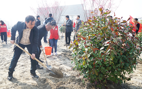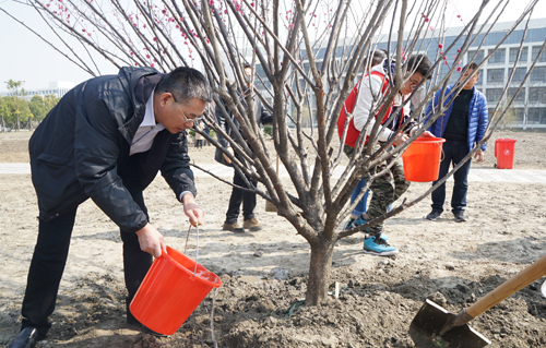 春风吹拂、万物复苏,正是植树造林的好时光。3月12日,正值第40个植树节,下午2点,校党委书记浦玉忠、副校长樊小东等校领导来到主校区图书馆东侧,与师生代表一道参加义务植树造林活动,为通大校园增添一抹亮丽的春色。学工处,团委,统战部、机关党委、工会党支部,公共卫生学院党总支,后勤党委,后勤保障部等部门负责人及部分师生代表参加了本次植树活动。