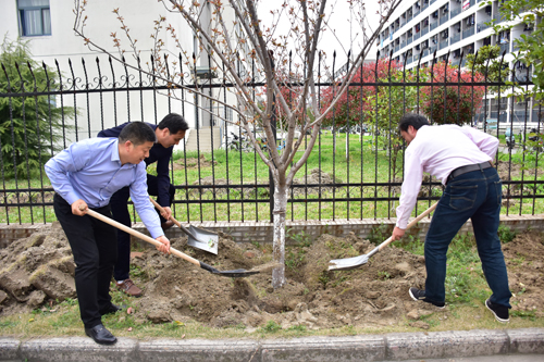 万绿新栽,春意盎然,为引导党员干部增强志愿服务意识,发挥先锋模范作用,3月29日下午3点,后勤党委组织党员在主校区学生公寓第八园区开展义务植树活动。
