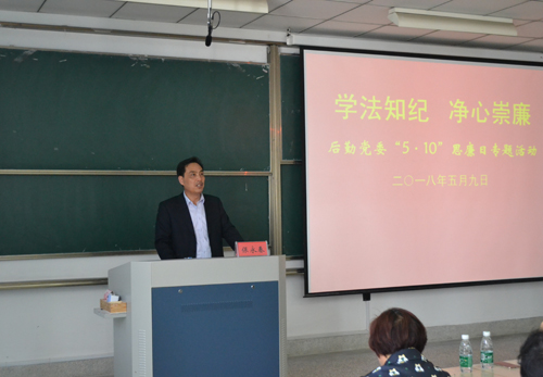5月9日下午,后勤党委在8#201教室举办“学法知纪、净心崇廉——‘5·10’思廉日”专题活动。