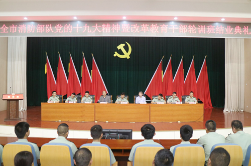 5月22日,后勤保障部联合继续教育学院承接的南通市消防支队干部培训结业典礼在市消防部队二楼会议室隆重举行。本次培训主题是“党的十九大精神暨改革教育”,共分为三期,从5月3日开始,历时近20天,南通市消防部队197名干部参加了本次培训。