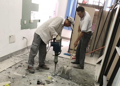 维修改造不光是中标单位的施工任务,前期的立项、现场调研、预算造价、招投标等工作都凝聚着修缮服务中心员工的智慧与汗水:中心主任顾雅美顶着烈日,与同事们奔赴现场调研,针对学院提出的改造要求,并结合她多年改造经验,通过多次沟通交流使改造方案更趋于便捷实用;负责预算造价的同志利用造价软件快捷迅速地完成项目的清单制作;办公室人员利用CAD软件对改造项目中的图纸进行绘制与修改;负责招投标的同志在假期内一次次地赶往招标办请教,联系软件开发商咨询系统操作问题。终于功夫不负有心人,在修缮服务中心员工的齐心协力下,所有招投标工作都能如期开展,为后续的施工队进场打下了基础,使施工工期得到了保障,为师生开学报到做好了充分准备。