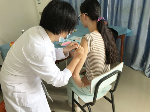 9月27日下午,医疗服务中心304预防接种室迎来了第一批接种者,南通市崇川区疾控中心顾红主任一行亲临现场指导。医疗服务中心主任、主任医师季艳琴亲自坐镇问诊并填写“成人预防接种健康状况询问表”,拟接种者携带有效身份证件接受问诊,阅读并签署“双价人乳头瘤病毒吸附疫苗接种知情同意书”,登记信息后,符合接种条件的师生将获得宫颈癌疫苗接种提示卡,接着是缴费、接种、留观,环环相扣,一气呵成。首批接种者留观30分钟均无不良反应,满意而归。作为一级预防手段,安全的疫苗接种无疑会大大降低相关疾病的发生率,有效呵护师生健康。(杨小华)