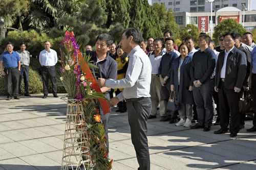 副校长樊小东、后勤党委书记保永春代表后勤党委全体党员敬献花篮
