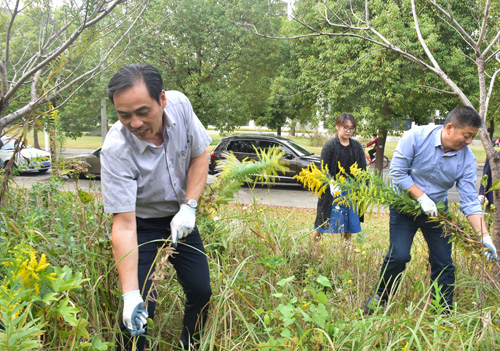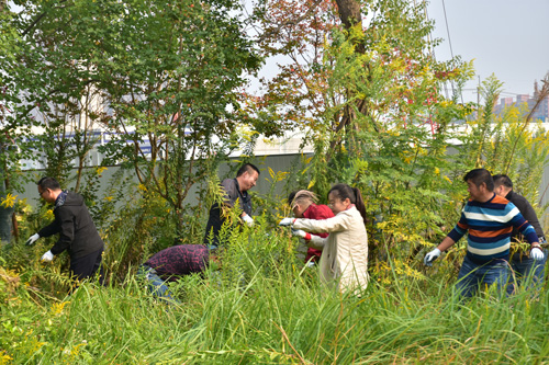 10月17日下午2点,后勤党委第三、第八、第九支部开展义务拔草活动,清理主校区南围墙附近的“加拿大一枝黄花”。