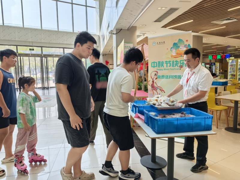 节日前夕,各校区食堂陆续换上节日装扮。红色气球点缀大厅,与明亮的灯光相互映衬,烘托出温馨愉悦的节日氛围。月饼作为中秋的文化象征,承载着团圆与祝福的深厚寓意。今年,饮食服务中心在保留枣泥、椒盐等经典苏式口味的基础上,创新推出仙桃慕斯、抹茶红豆、黑芝麻等新式口味,为师生带来更加丰富多元的味觉体验。尤为用心的是,月饼表面精心压印了南通大学标识、校训及校园景观等元素,将校园文化凝聚于方寸之间,成为师生珍藏的“通大独家记忆”。