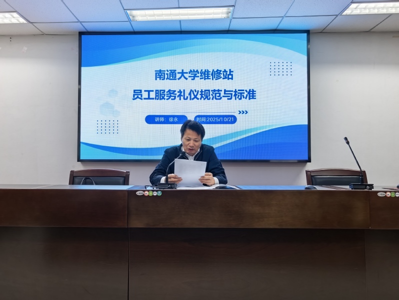 10月21日上午,修缮服务中心特邀一级人力资源管理师、珠海万达商业管理集团有限公司上海城市公司人力业务总监徐永,来校为维修站员工作服务礼仪培训。后勤保障部副部长刘时方主持培训。