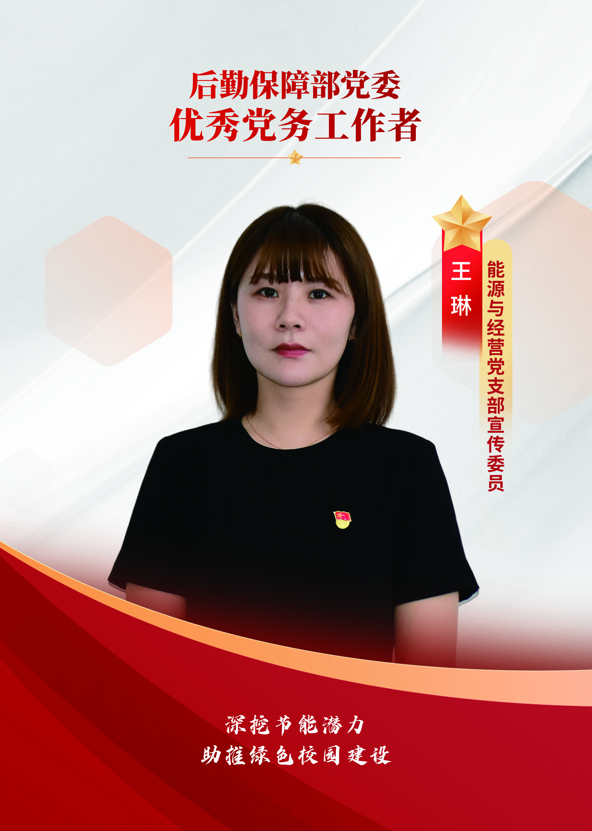 作为后勤保障部能源与经营党支部的宣传委员,王琳始终坚持以“党建为魂、节能为要、服务为本”为导向,将全心全意为师生服务的初心融入日常工作的每一个环节。她把提升全员理论学习质效,做好支部宣传工作作为核心任务,及时传达党的方针政策,广泛开展宣传活动,高效统筹校内资源,精准分析能源数据,用“匠心”与“热忱”助力各项工作提质增效。