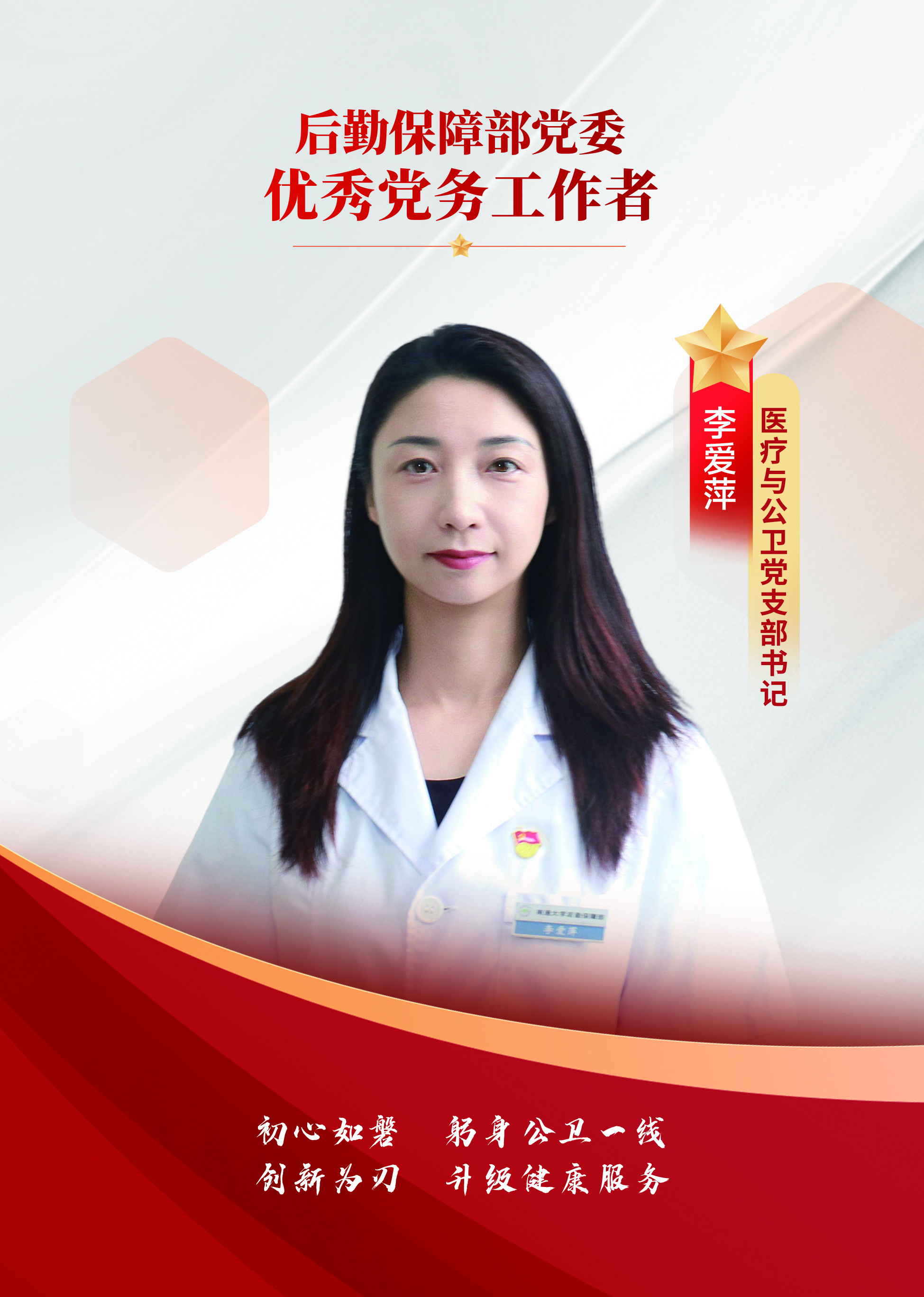 一名党员就是一面旗帜,一个支部就是一座堡垒。李爱萍,现任后勤保障部医疗与公卫党支部书记、医疗服务中心主任,她始终坚守“全心全意为师生服务”的宗旨,以共产党员的炽热初心,在平凡岗位上默默耕耘,为校园筑起坚实的健康屏障,生动诠释了新时代党务工作者的责任与担当。