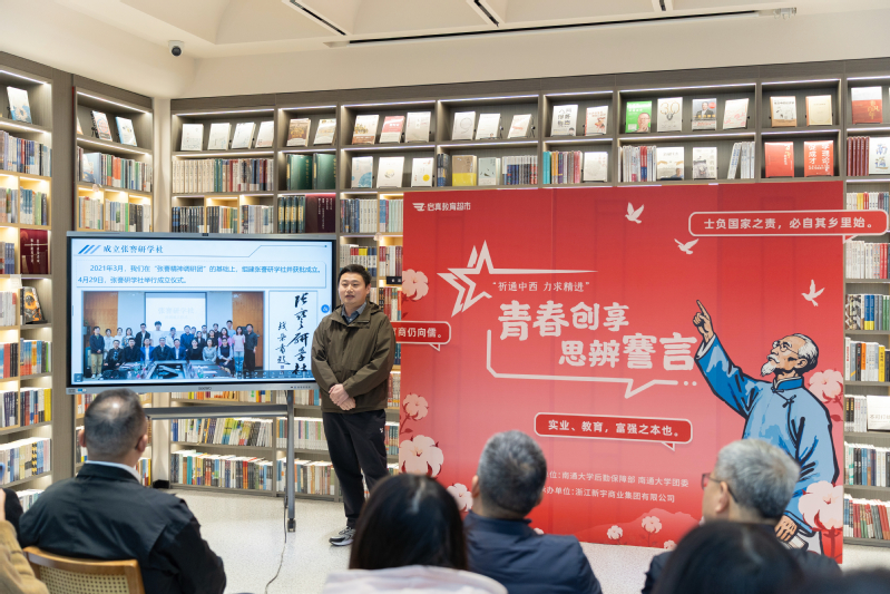 在张謇精神主题宣讲环节,我校张謇研究院办公室主任、张謇研学社指导教师张若愚以《张灯结彩謇韵传承——张謇精神之我见》为题,回顾了自己与张謇研究结缘的过程,介绍了成立张謇研学社并组织学生开展张謇故事宣讲、张謇遗存调研等工作的经历。他表示,张謇精神集中体现为“为国担当、造福乡梓”的家国情怀,希望此次宣讲能让张謇精神在通大学子心中生根发芽,成为指引前行的精神灯塔。教师教育学院硕士研究生、张謇研学社团支书何心钰以《江海星光映高原:张謇精神的青春答卷》为题,分享了在张謇精神感召下,自己选择赴青海支教的心路历程。她结合支教期间的真实经历,生动诠释了张謇“实业救国、教育兴邦”理念在新时代的延续,展现了“父教育、母实业”精神在当代青年身上的传承。
