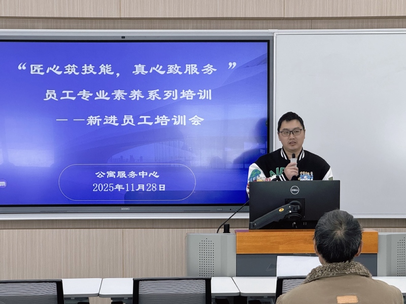 11月28 日上午,公寓服务中心以“匠心筑技能 真心致服务”为主题开展新员工培训会,会议由中心副主任王叶主持。