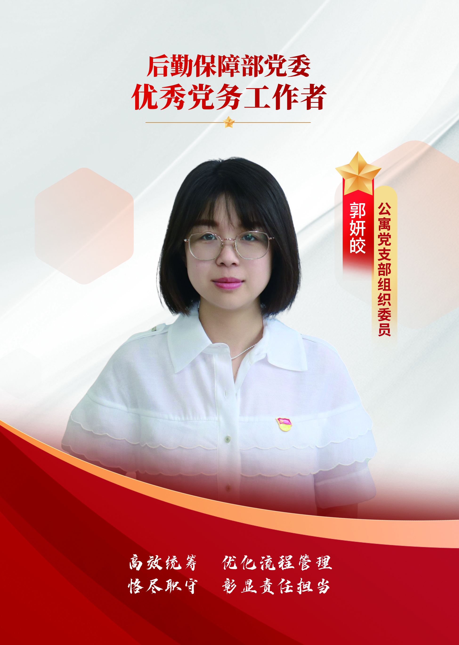 以“党建红”引领“服务蓝”,郭妍皎用具体行动诠释了党务工作者的责任与担当。她常说:“党建不是虚功,要融入业务、落到实处,才能真正发挥作用。”未来,她将继续以扎实的工作作风、创新的工作思路,在党建与业务融合的道路上深耕细作,为公寓管理和支部建设发展贡献更多力量。