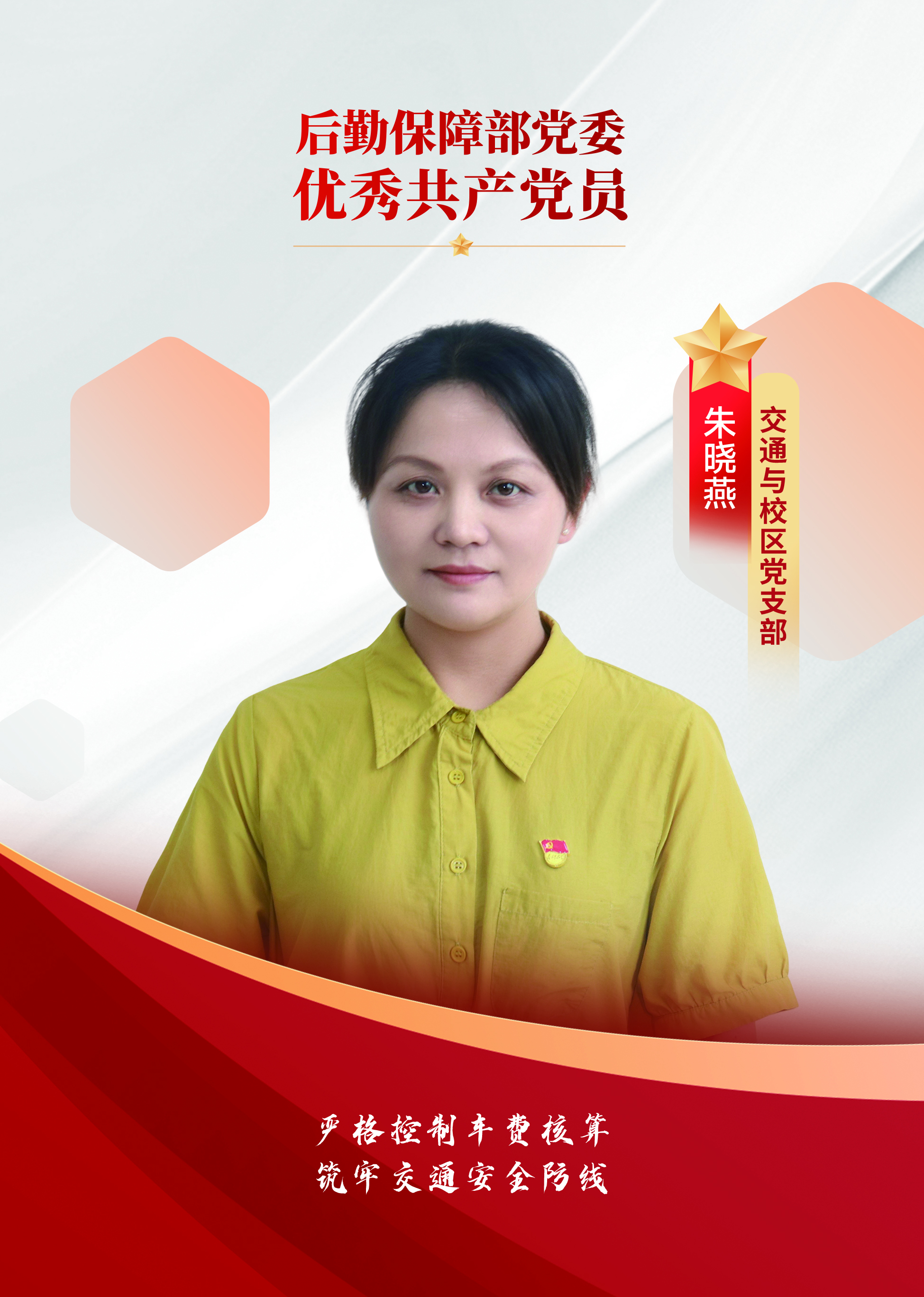 朱晓燕,在后勤战线深耕21载,现任交通服务中心助理。用恪尽职守的态度和务实高效的作风,生动诠释新时代党员的责任与担当。从日常保障到专项任务,在平凡岗位上默默耕耘,以实际行动为后勤事业发展注入源源不断的力量,先后获得“江苏省高校后勤协会运专会优秀管理员”“最美后勤人优秀共产党员”“后勤保障部优秀员工”“后勤保障部先进个人”“安全月先进个人”等多项荣誉,成为后勤队伍中实干担当的典范。