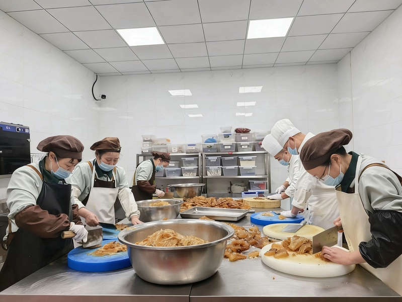 集中加工年货期间,食堂员工们团结协作、全力以赴,每天从清晨7点忙碌至晚上9点,加班加点、任劳任怨,以高度的责任心和饱满的热情投入生产,顺利完成各类年货的加工制作。后勤保障部副部长王东多次亲临现场,仔细查看生产流程、食品安全及产品质量,并对坚守一线的工作人员表示慰问,叮嘱大家劳逸结合,始终坚持将食品安全与交货品质放在首位。