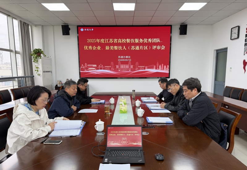 4月21日上午,2025年度江苏省高校餐饮服务优秀团队、优秀企业、最美餐饮人(苏通片区)评审会在我校召开。评审会由苏通办事处秘书长、南通大学后勤保障部部长徐建主持。